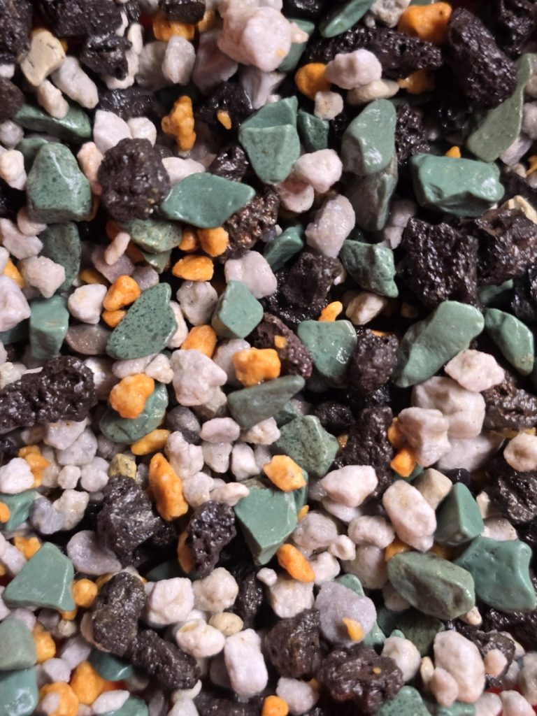 - Green zeolite – buffers moisture and holds nutrients for gradual release